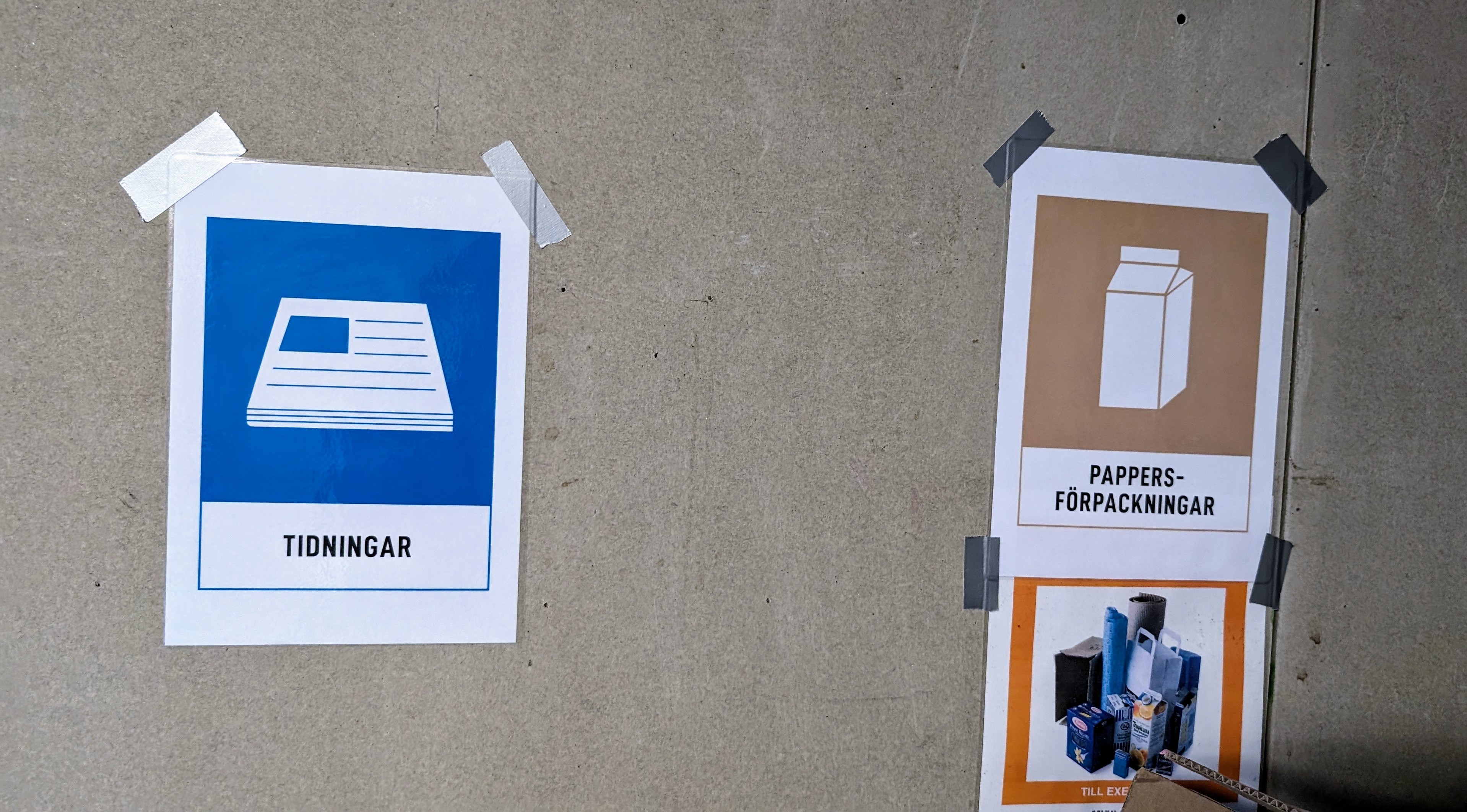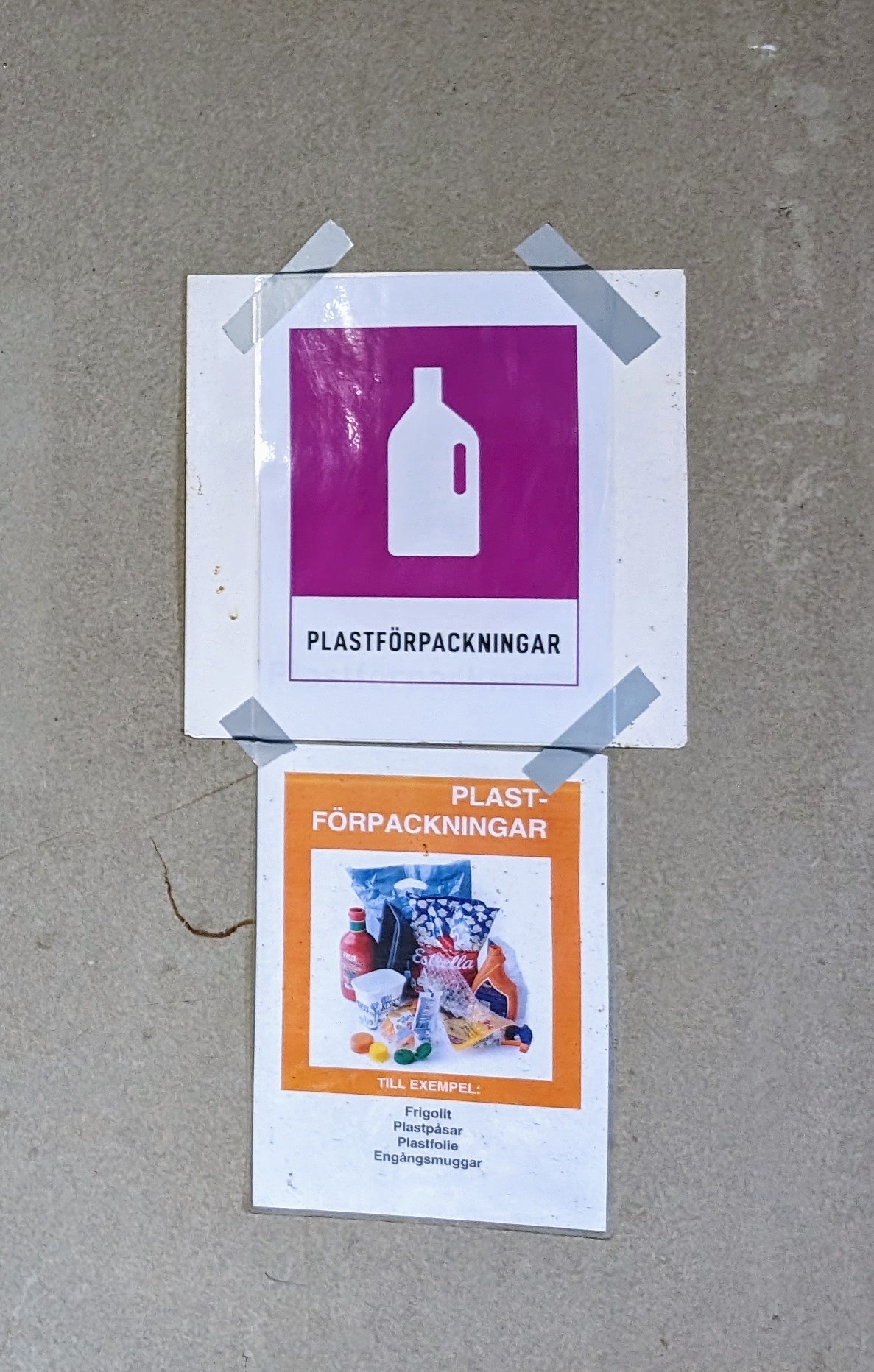 Med anledning av de nya sorteringskärlen för tidningar (Bertil) och metallförpackningar (Birgit) som har ställts upp från årsskiftet så har nya skyltar beställts från Uppsala Vatten och nu satts upp i soprummen.