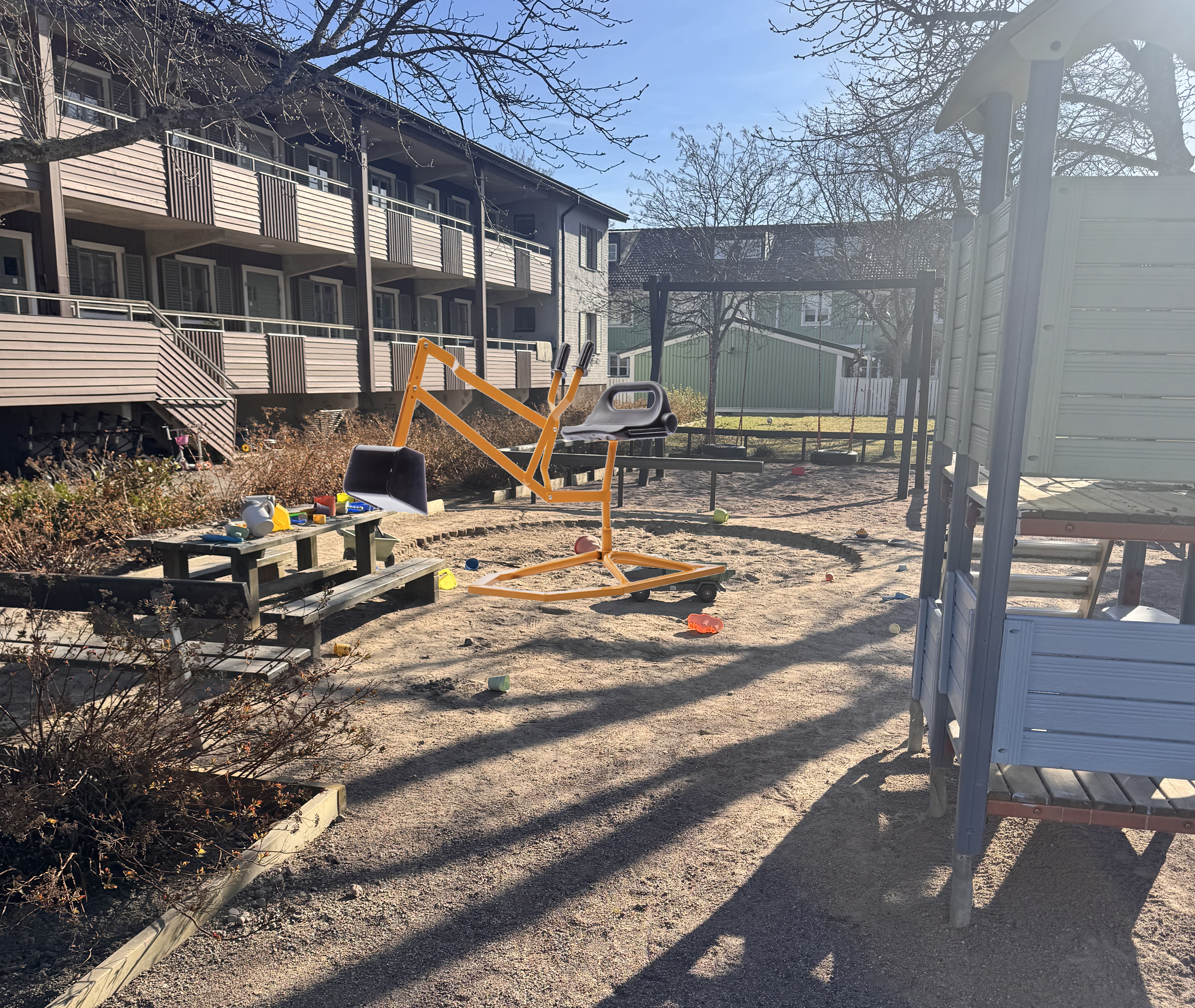 Jag tänkte samordna ett inköp av en grävmaskin till sandlådan. Det är en rolig leksak som sysselsätter sin maskinist länge.